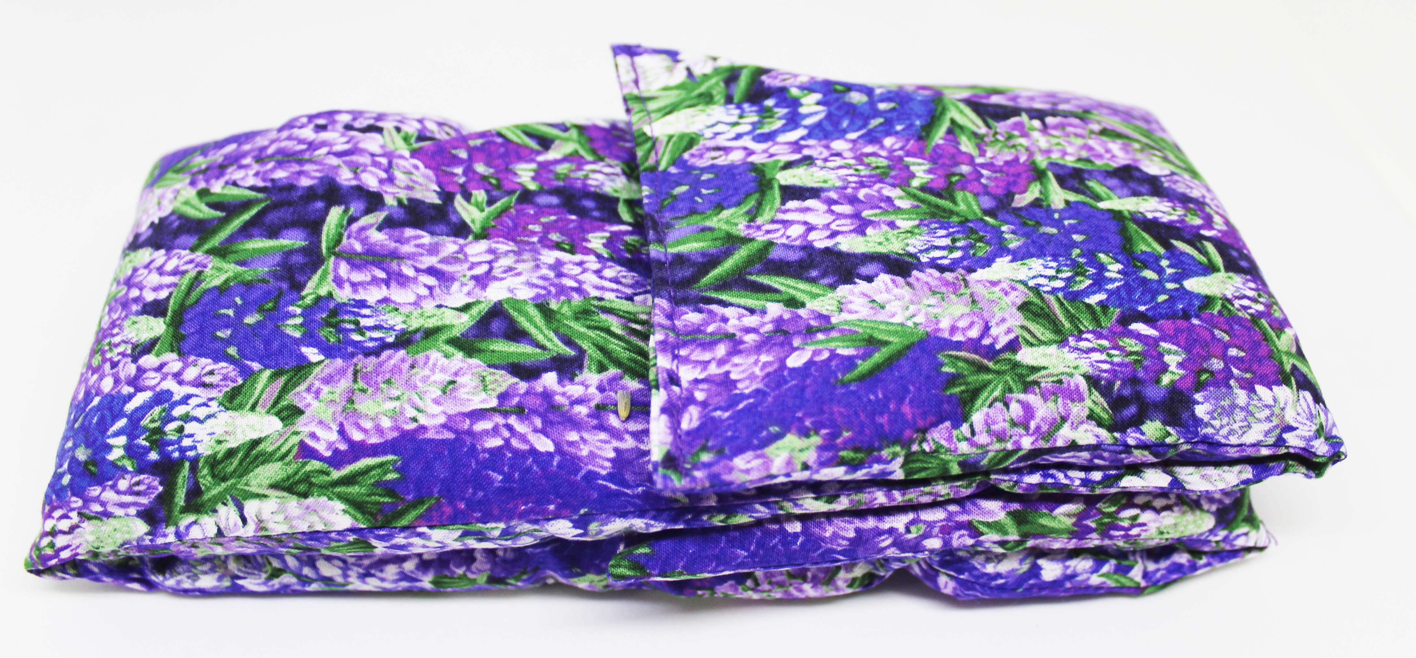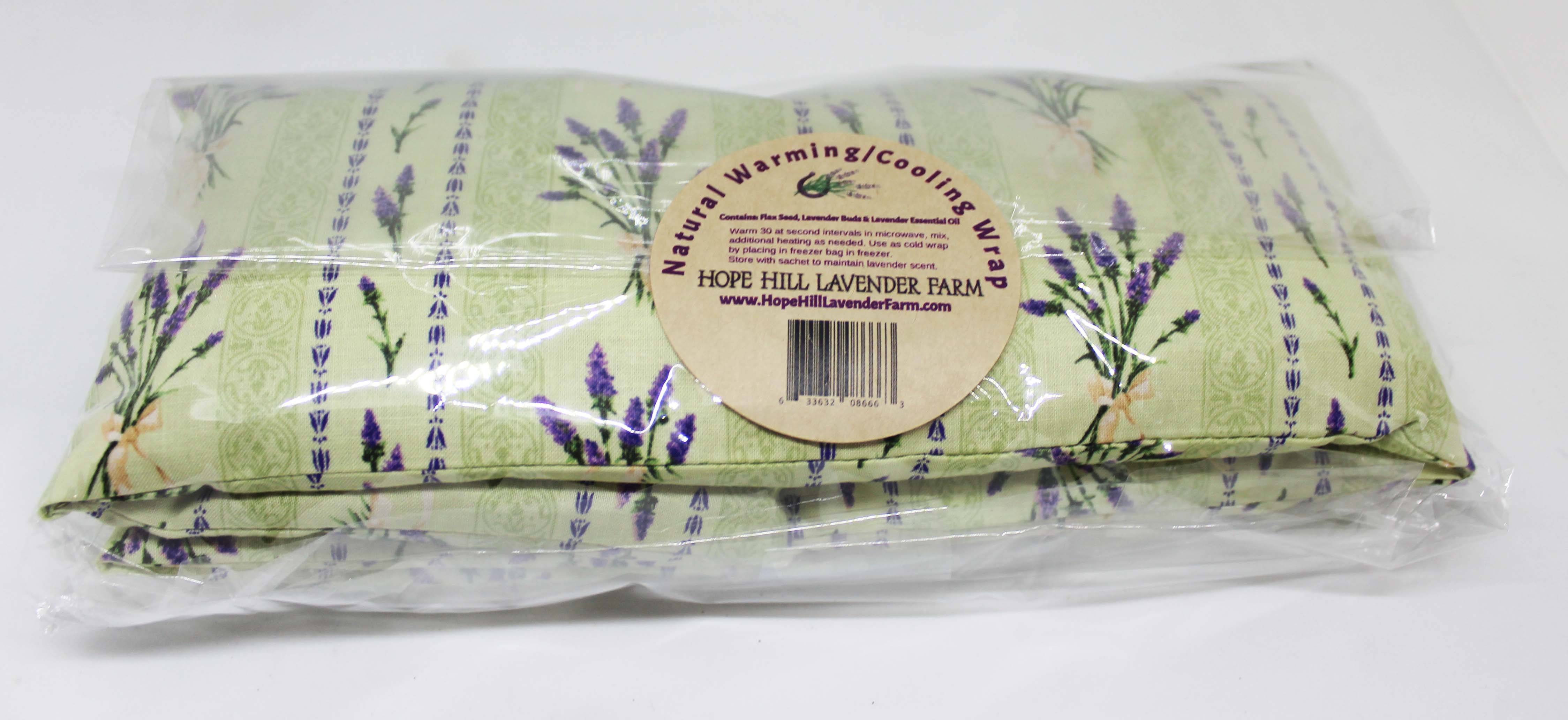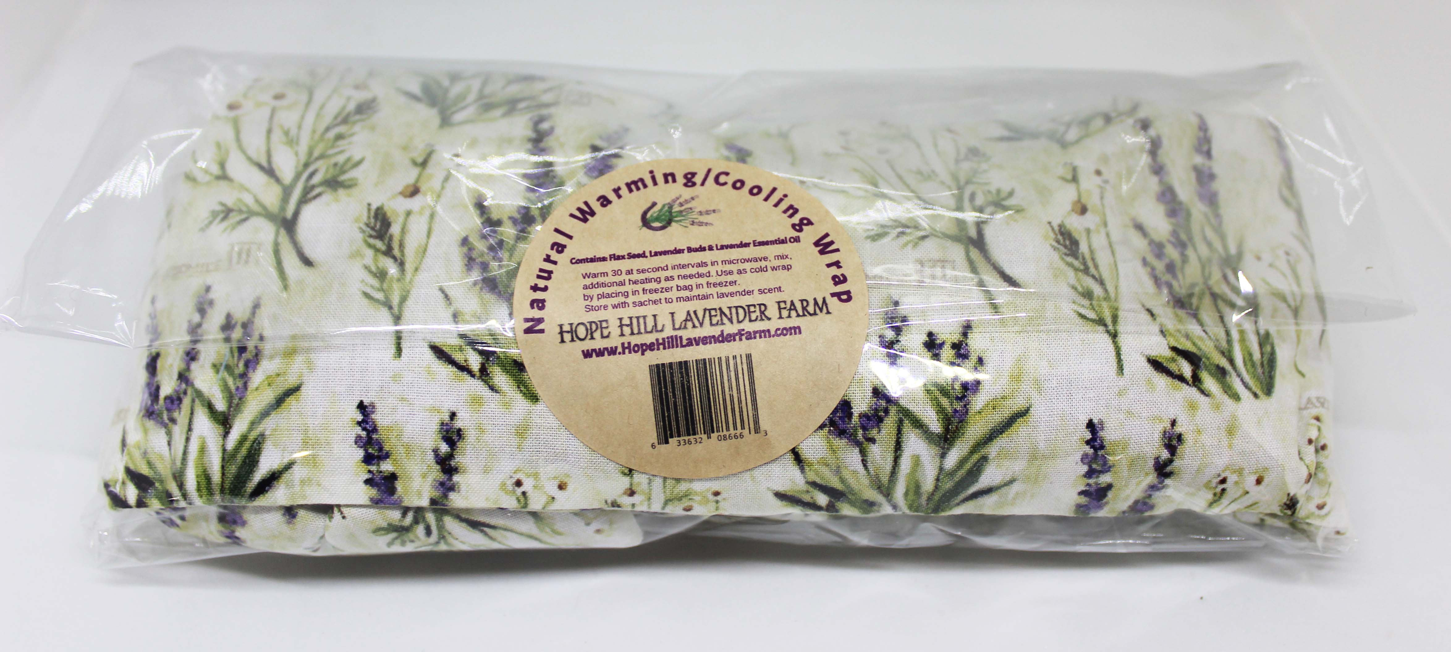 Flax Seed, lavender buds and lavender essential oil filled neck wrap.  Use as a heating pad for a sore joint or to keep you toasty in the winter. Can be put in freezer bag and put in freezer for cooling a sore joint, too.